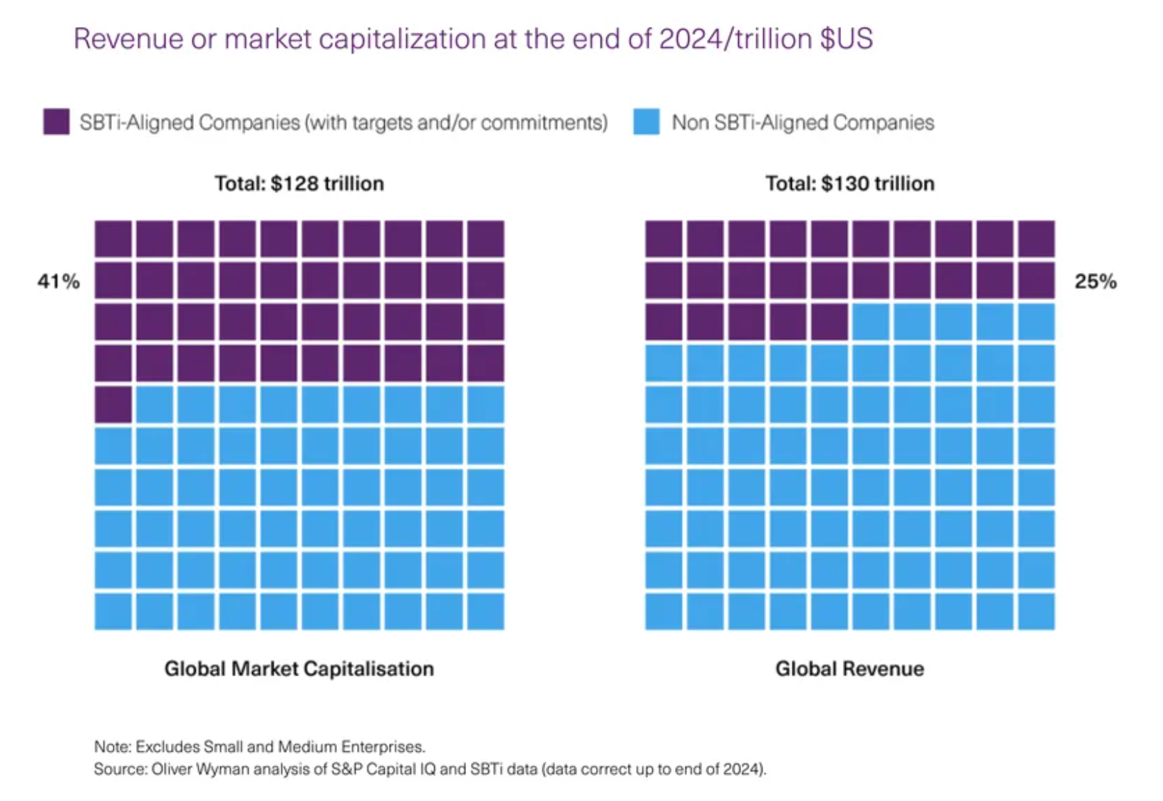 Ten years ago, the words “net zero” barely appeared in corporate boardrooms. Today, nearly half the world’s market value is already aligned with the Science Based Targets initiative (SBTi). That’s 41% of global market capitalization and a quarter of global revenue, where companies that have put climate targets at the heart of business. By 2030, that share could double.