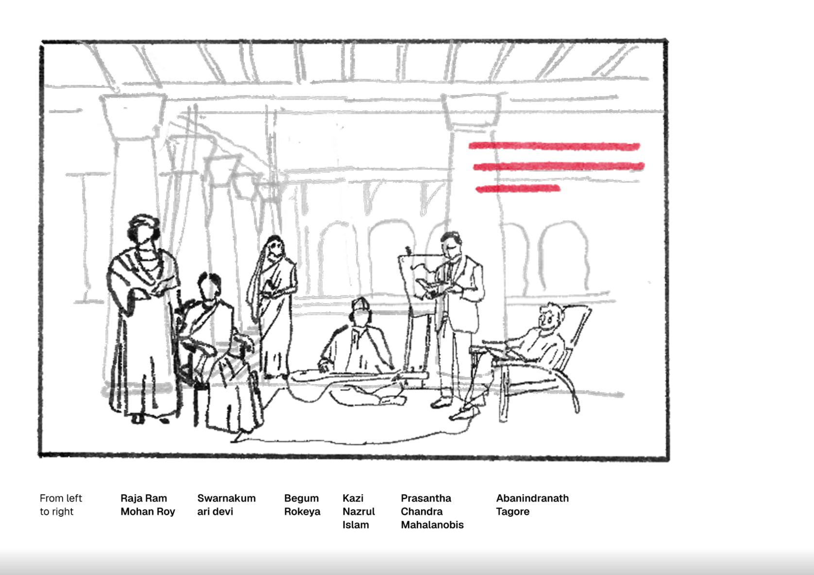Option 2: The Bengal Renaissance meets School of Athens failed more because of the platform we were exhibiting on & the narrative target we set out, rather than the idea itself. The original seduction was to invert the School of Athens, a central image of Western intellectual life. By doing so, we could tell the longue duree story of an Indian intellectual renaissance that catalysed Indian independence.