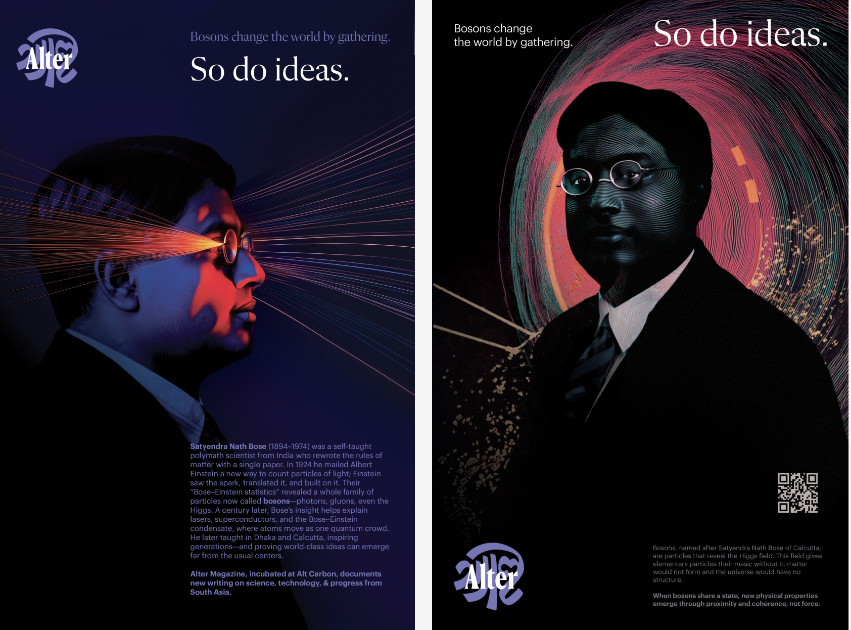 Then, Satyendra Nath Bose happened. We read a newly published essay in Aeon (God bless great magazines), and suddenly our creative juices were on overdrive. But before we got to design, we needed to build our concept thoroughly.