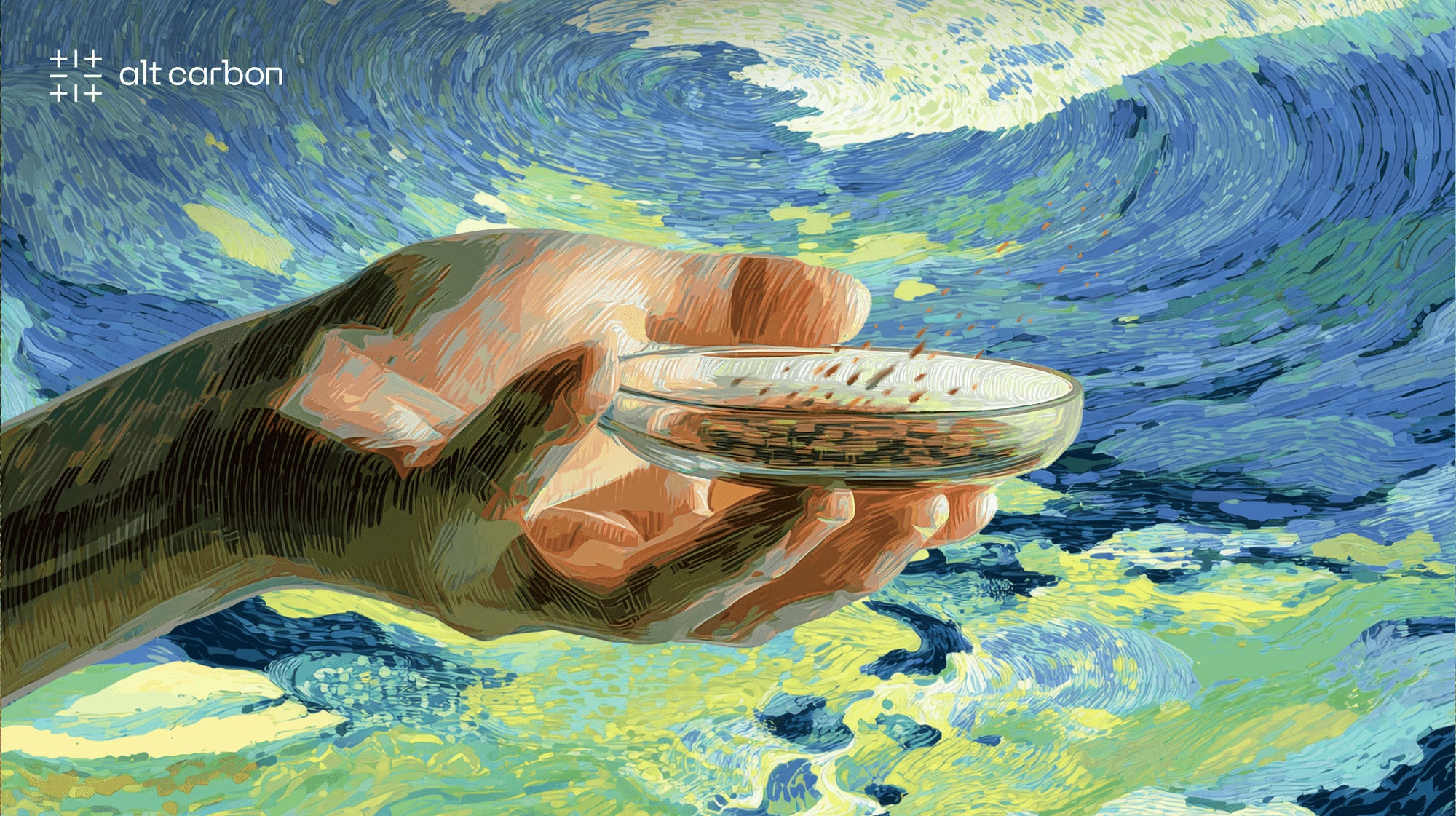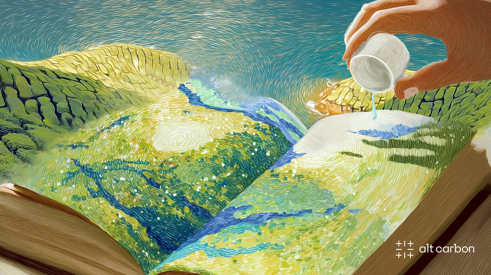 We use a novel carbon removal method called Enhanced Rock Weathering (ERW), which involves sourcing a volcanic rock (waste basalt) from mines and spreading it across agricultural fields. This basalt rock not only improves soil health and crop yields but also reacts naturally with rainwater to remove carbon dioxide. When CO₂ in rainwater falls on basalt dust, a chemical reaction converts it into stable bicarbonate ions that are stored in the soil. Over time, these ions travel through river networks to the ocean, where they eventually reside as calcium carbonate (CaCO₃) for over 10,000 years. But measuring carbon removal is the harder part of the process.